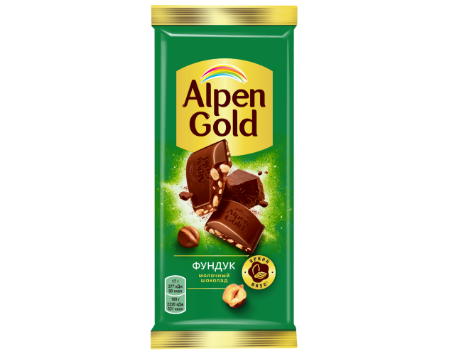 Alpen Gold с дробленым фундуком — микс молочного шоколада и хрустящего фундука с приятным