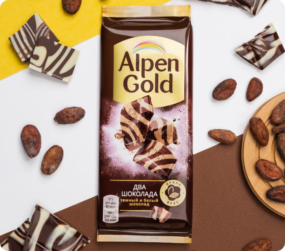 шоколада и насыщенный вкус с мягкой ноткой какао. В ассортименте Alpen Gold представлены как