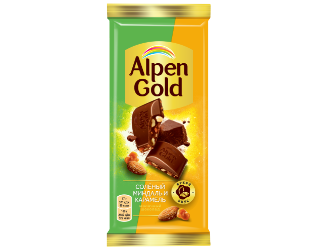 Alpen Gold с соленым миндалем и карамелью — изысканное сочетание сладких и соленых нот,